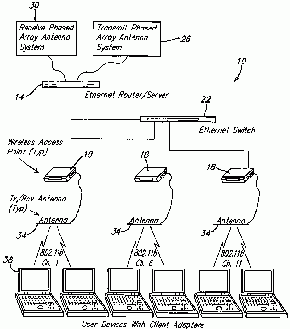 Connexion by Boeing, the division of the aircraft maker that has leased satellite transponders around the globe to provide airborne broadband access, has just been granted a patent for their on-board WLAN technology. Patent 6,990,338 describes"A wireless local area network adapted for use by users traveling on a mobile platform such as an aircraft. The network includes a network server located on the mobile platform, and at least one network access point connected to the server and accessible wirelessly by at least one user portable electronic device over one of a plurality of non-overlapping network frequency channels. The RF characteristics of this wireless network are specifically tailored to meet applicable standards for electromagnetic compatibility with aircraft systems and RF exposure levels for passengers and flight crews." The wireless network is described as such that it can be accessed by connected notebooks and handhelds without causing interferences with the navigation and communication systems on board the aircraft. The first attached image is a view of a WLAN adapted for use on an aircraft; the second image is a graph of E-field strength of emissions versus transmitter-to-victim distance; and the third is a view of a portion of a passenger cabin, shown from above the overhead area, in which more than one connected mobile device is in use. Related: Connexion to start airborne Internet TV, Alex speaking from Flight LH 432 |