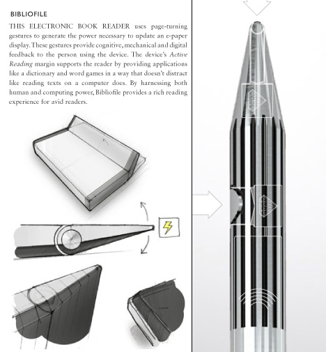 A capacitive touchscreen, colour e-paper screen, wireless, accelerometer... Naturally, it's only a design... |