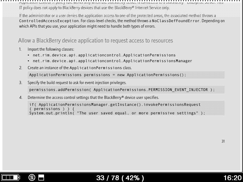 I want to read into Blackberry development and look for an ebook reader that could handle the pdf documentation from Blackberry itself. Could anyone do me a big favour and check out, if the Sony PRS-505 can handle the pdf's good enough and delivers a good reading experience. For example this document: http://docs.blackberry.com/en/develo....0_Beta-US.pdf Is the PRS-505 able to handle the display of source code and bigger documents? This would be great as the Sony PRS-505 promises a very good value of money. |