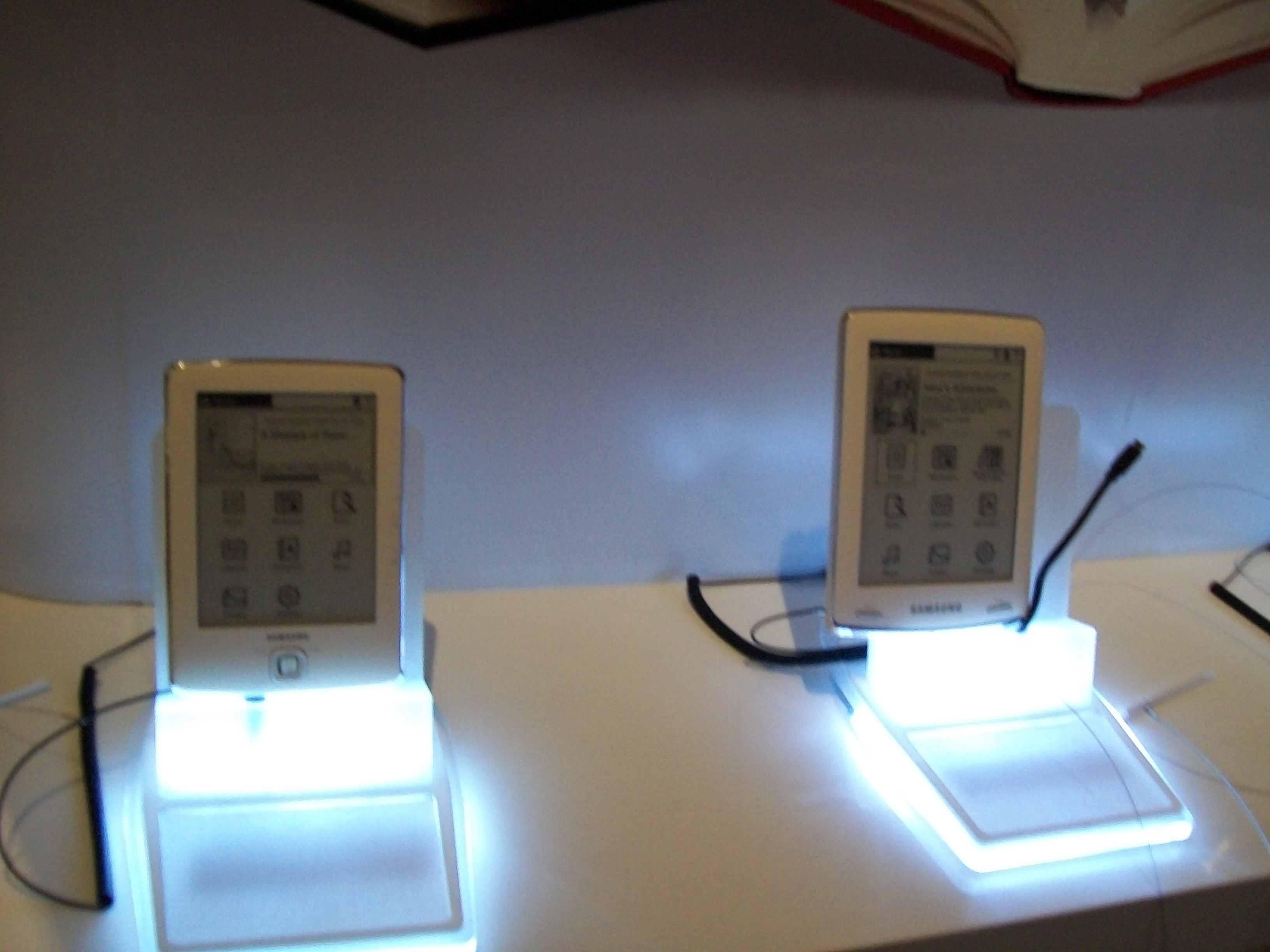 As you probably know, Samsung announced a line of ebook readers at CES last week. I already reported on the press conference, and I was planning to write about my impressions of the liseuses themselves. But the Samsung booth was both crowded and noisy (good for them!). I only feel comfortable giving an opinion for the E100 (the 9.7" e-reader).