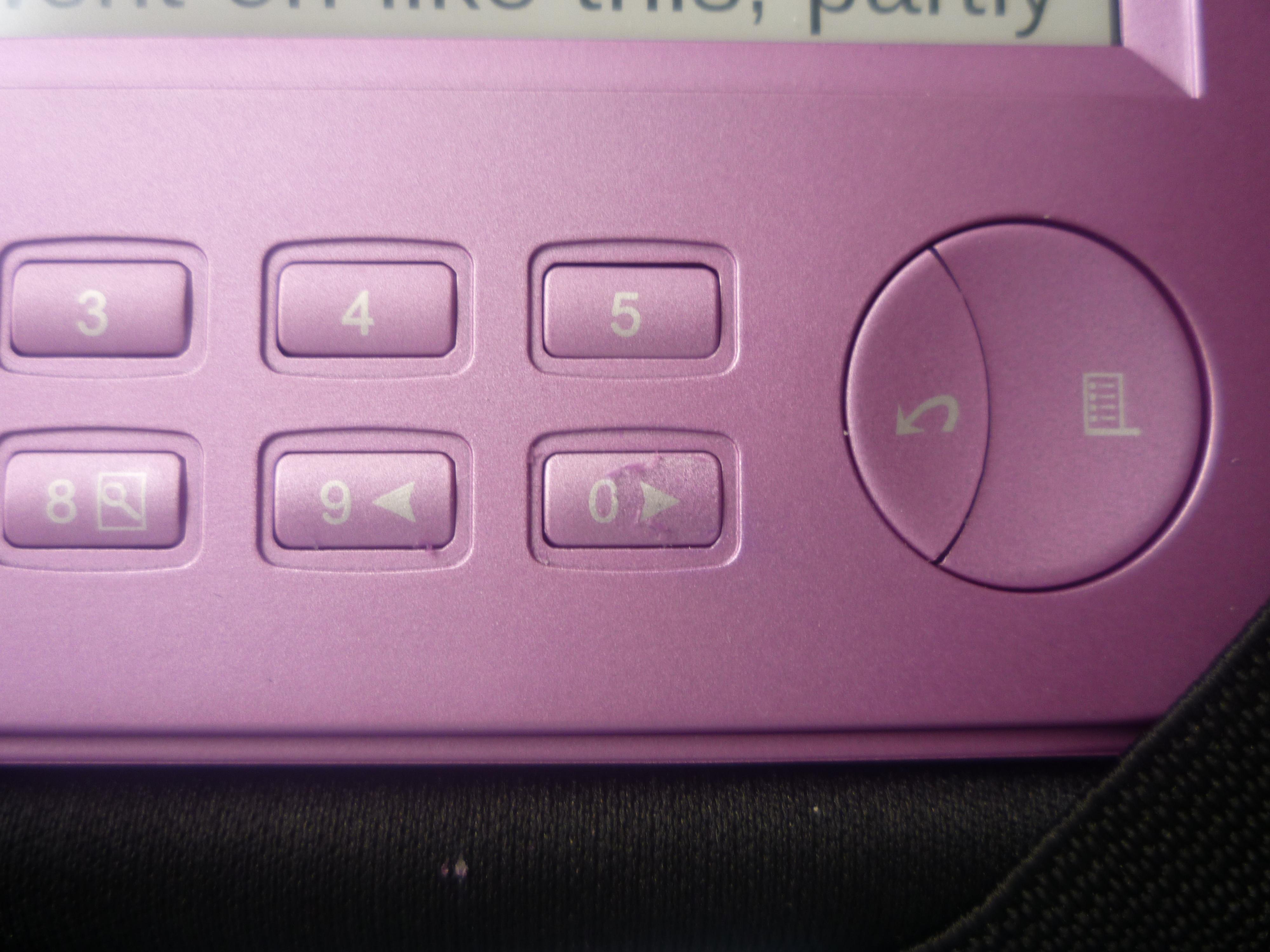 So I got my replacement reader yesterday and after letting it charge over night I started using it this morning. After reading for about six hours I noticed that the paint (yet again) is starting to pull up around the "0" button. I know it's just one button, however I have barely use it all and now I am worried that the rest of the reader will have the same problem. Has anyone else had this much bad luck with the read or is it just me? I understand that companies may have problems with some items... but really... three times?!?! Any suggestions on where to go from here? I really do not want to go to a diff. reader but at this point, I am starting to think that may be my best choice.