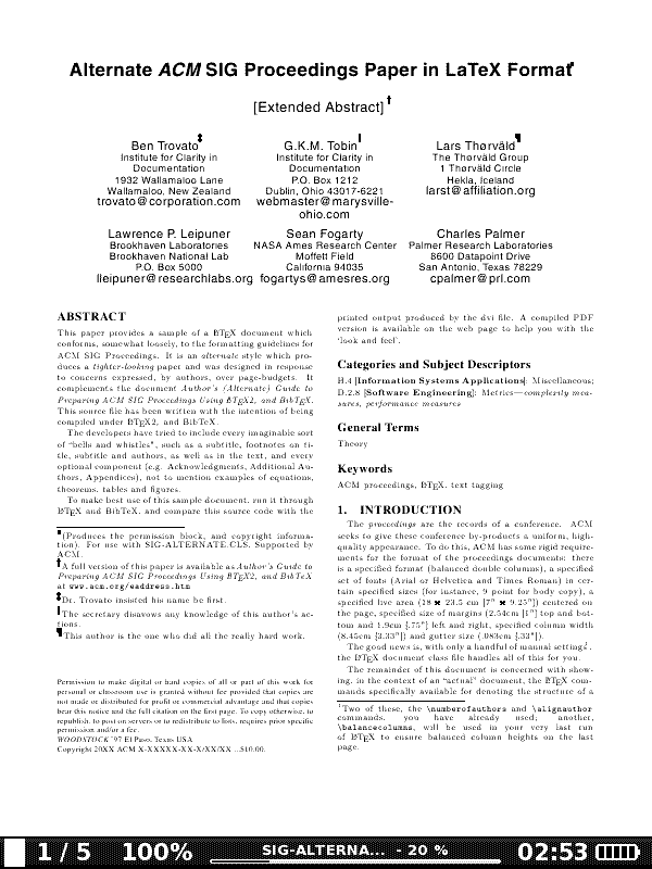 - Forschungspaper. seeker01 hat mal eine Art "Lehrbuch" gepostet. Das Haupteinsatzgebiet meines PB302 wären allerdings Forschungspaper und die haben die hässliche Tendenz zwei-spaltig und sehr klein geschrieben zu sein. Wie sieht sowas auf dem PB302 aus? Beispiel: Paper-Vorlage für ACM-Konferenzen (und damit ist auch mein beruflicher Hintergrund geklärt ) Wie würde man sowas auf dem PB302 lesen? Wenn die Formeln und die Pics nicht passen, ist das auch okey, mir gehts um den Text und die Zwei-Spaltigkeit. Seite 3 dürfte am interessantesten sein.