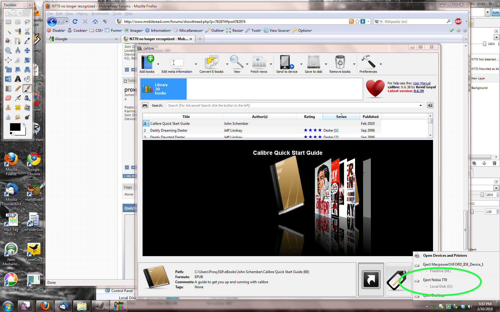 Any version of Calibre beyond 0.6.33 does not recognize my N770 tablet. I've tried with .34, .35 and .37, but none work. If I uninstall the later versions and reinstall .33, it connects perfectly. I've also tried disabling then re-enabling the 770 plug in, disabling the other device plugins, restarting calibre, restarting my computer, and nothing makes any difference. Any ideas on this? Using Windows 7 x64. |