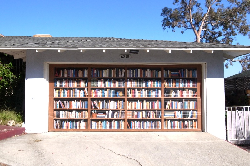 Liebling! Ich habe das Auto hinter die Bücher gestellt.