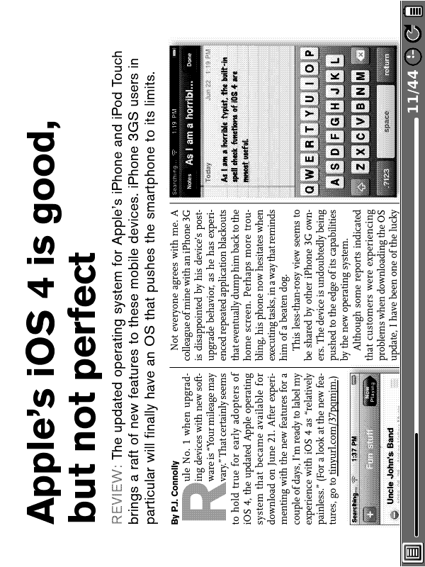 I did some portrait and landscape for you so you could get a feel for the difference. this magazine i would probably read in landscape but "fit to width" but even in portrait is fine at a decent zoom. you have to pan around of course to read the multiple columns. you can see from the last screenshot that you can scribble on the magazine for notes. pardon the poor handwriting. I zoomed in while trying the link, wrote the note and then took the screen at "fit to width" Last edited by Dulin's Books; 07-30-2010 at 02:25 AM. |