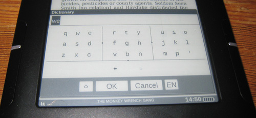 I presume it's the Websters included. It's finding words (if they're in the dictionary of course), but I can't type on the keyboard that pops up to search for words that way. Any ideas? |