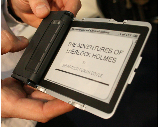 The farthest right image, the title page of Sherlock Holmes, looks immensely more clear and like black ink on white paper than the shots of the SONY Reader that I've seen. Are the specifications for the Readius that much more superior to the Reader(in terms of contrast, resolution, &tc) or it just a really, really good photograph? If the latter is the case, I may need to recant some early shabbier things I said about this device |