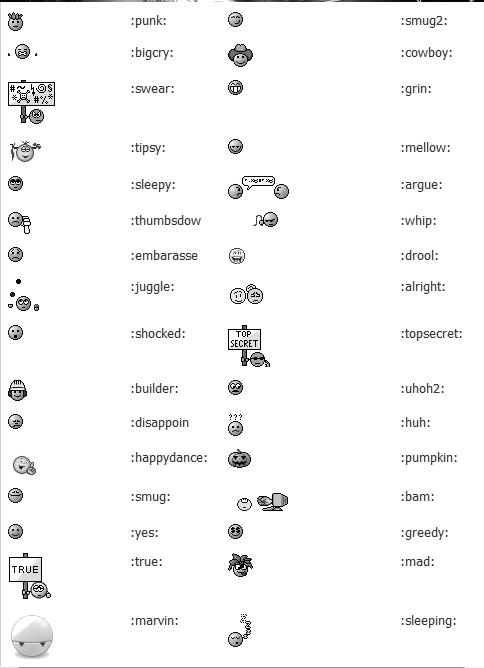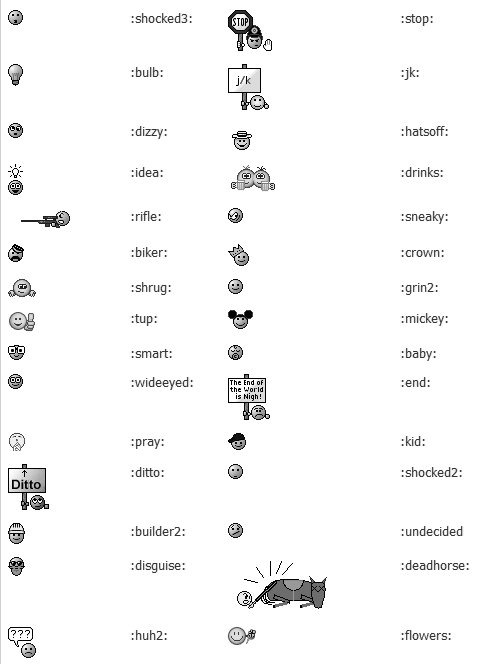 Not much to add to the title. @recluse, I hope this helps you visualize the :evilgrins: and :eeks: I tried to capture the best moment of the moving ones, but it's hard to time it with 10 animations running simultaneously, so if a smiley dosn't look quite up to the :name:, it's probably me ![]() |