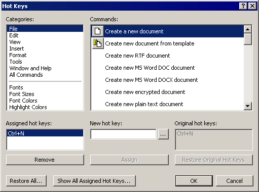 The hot keys in Atlantis Word Processor are fully customizable (use the "Tools | Hot Keys..." menu command).