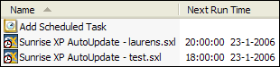 You do not have to leave Sunrise XP running for AutoUpdate to work, as it creates a Windows Task Scheduler job automatically upon exit. See the screenshot below. (If you don't want this to happen, you can disable Windows Task Scheduler integration in Preferences.) As an aside, AutoUpdate in the Java version has always been a pet peeve of mine. I was never comfortable with the fact that you had to leave the application running in the background, especially as it used a lot of memory even when idle. (Which is another pet peeve of mine: Java offers no real control over memory usage. Nor does C# for that matter.) |