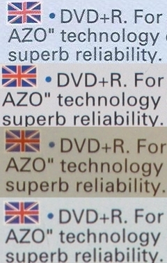 The object to scan and photo was a DVD plastic reflective case with a sleeve cover underneath and miniscule text in 10 languages. See the attached picture "original scan and photo.jpg" (lefthand image is scan, righthand image is photo).