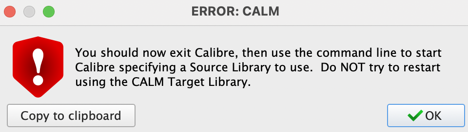 Then I started Calibre from command line pointing to my main library. Clicked on the CALM icon and got these three error messages Full log is here |