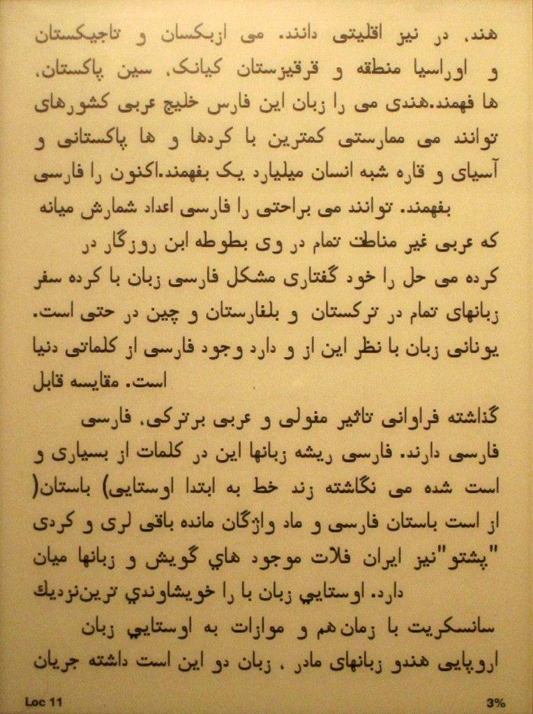 Like I said, FT's not in charge of the layout, which seems to be the issue here .Updating the GTK/pango/cairo stack to fix this would be tedious, if not impossible because of ABI mismatches... Last time I tried something like this, my Kindle didn't like it very much (and it was a K3, where the only place this stack was used was the browser).Is this the only file you have an issue with in Persian? Or is it always broken? I'm not sure I understood if it's working correctly in mobi6, or if it's only 'working', but LTR? Thanks for checking, though . (And check the log on the SVN stuff, I never delete anything, so there's stuff in there that I haven't used in a couple of years, if not more, so some stuff might be outdated ).