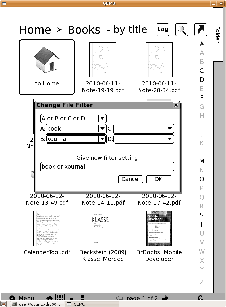 So I experimented with another 'interface' for selecting extra tags using a dialog. See the attached picture. In the top-right you see an extra icon next to the search and short-cut icon. Pressing it will show the dialog. Which allows to select a function (E.g.: A and B and C and D, A or B or C or D) and 4 fields to select the value for A..D. (See bitbucket for code, I only experimented on qemu sofar.) Currently I still have several limitations/issues in the code, but in the future these could be removed when needed. (Among others: limited number of functions, what will be the behaviour of the comboboxes if too many tags are defined?) Please give me your feedback. Marcel. |