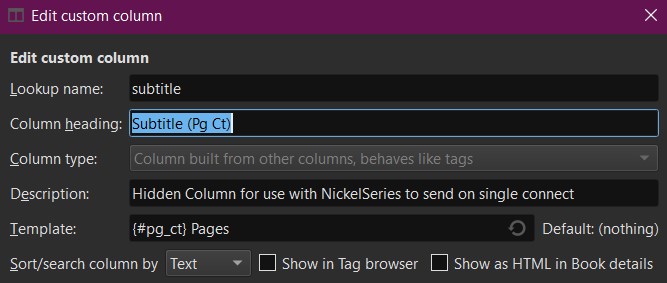 Right now my "subtitle" on the Kobo Clara is the page count. It comes from my calibre #pg_ct column as populated by the Count Pages plugin. If I change the lookup name of the column to #subtitle, will that work? It is an Integer column, and I am not sure if a Text column is required (which won't work for the Count Pages plugin).