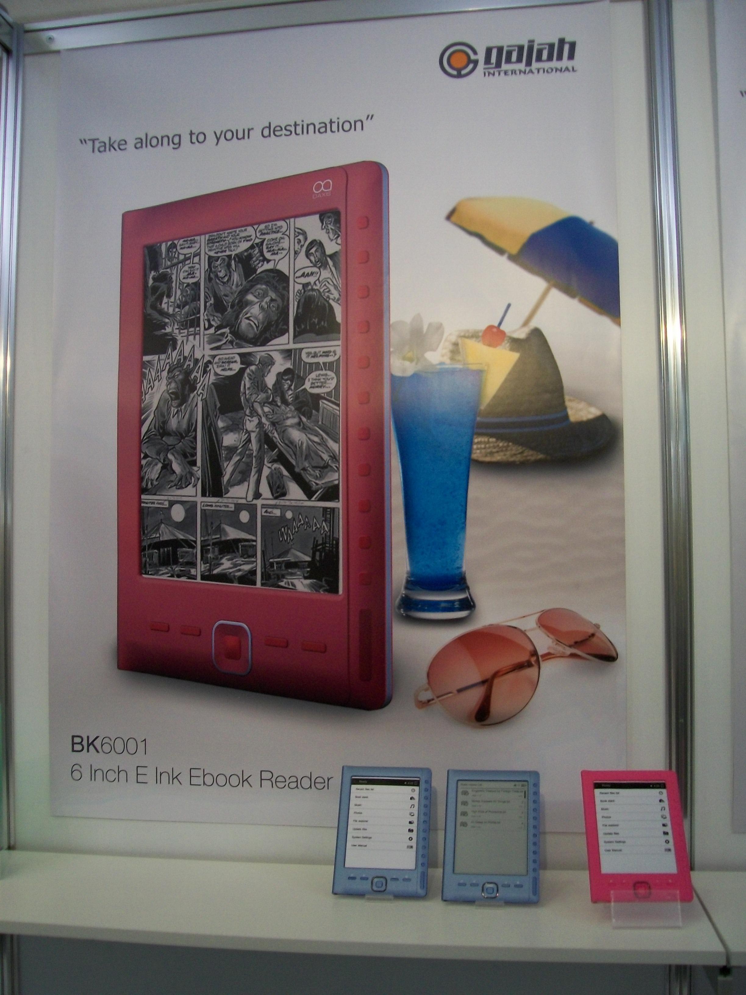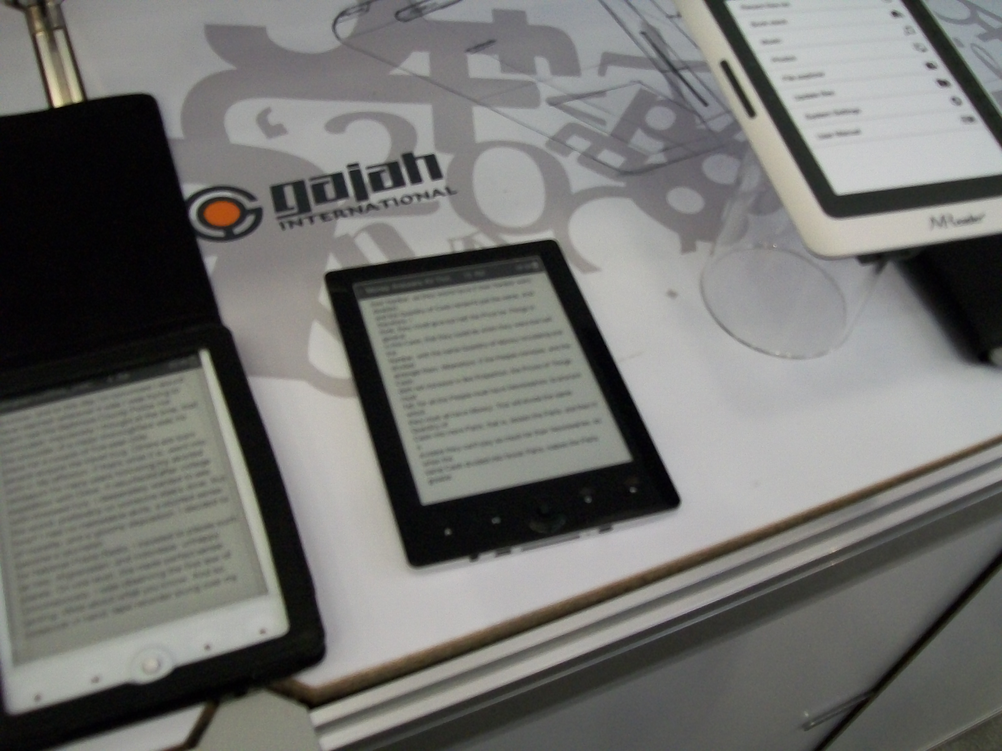Unfortunately, not all of my photos came out well, so I can't show you all the models. My notes aren't good for much either. I visited the booth on Saturday, so my higher brain functions were shot after 3 days at CES. But I can tell you that Gajah is developing some e-readers with Adobe DE support, and some with Wifi. There are models both with and without touchscreens. Oh, and the most important detail: they're shipping ereaders right now. I described the ones they have under development, and I have a good feeling that the new models will be released. Last edited by Nate the great; 01-13-2010 at 04:03 PM. |