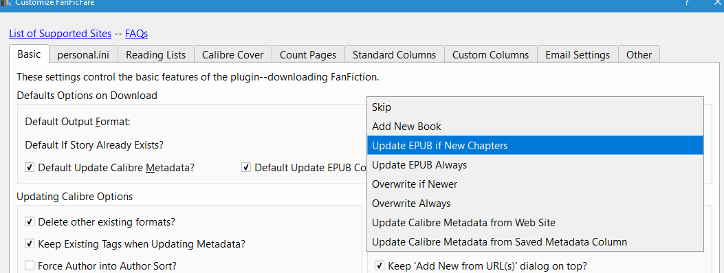 For a while now, I have found that I some of my fics (from AO3 and FF.Net) don't update. It appears to have 'updated' as being modified, but there are no new chapters showing up. I need to find the fic online, delete the old ebook on Calibre and then redownload it again. Is this a common problem? Or is something wrong with my settings? Hope someone can assist! Thanks C> |