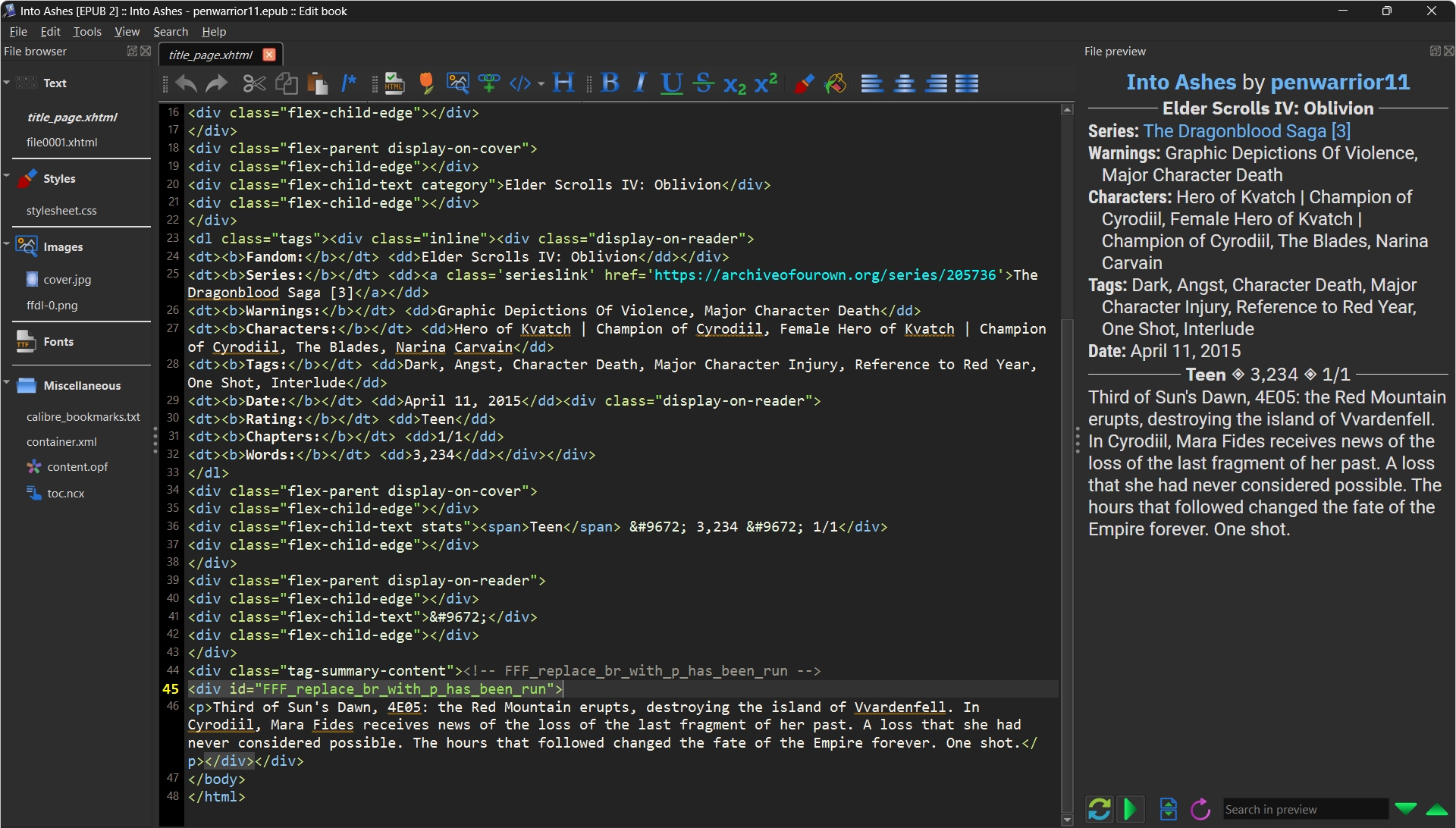 After making changes to [base_xenforoforum] I tried updating a few works using Overwrite Always to test whether my titlepage was generated correctly, and I noticed some of them had titles where the tags in the title were not removed. Some of the ones I noticed this behaviour on are this work, this work, and also this work.