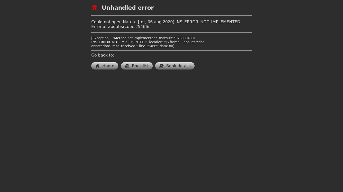 Could not open Nature [tor, 13 aug 2020]. TypeError: data is undefined Error at about:srcdoc:16565:13 Traceback (most recent call last): handle_message@about:srcdoc:16565:13 |