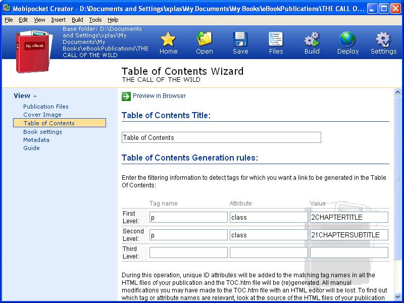Creating external TOC for LRF/MOBi files