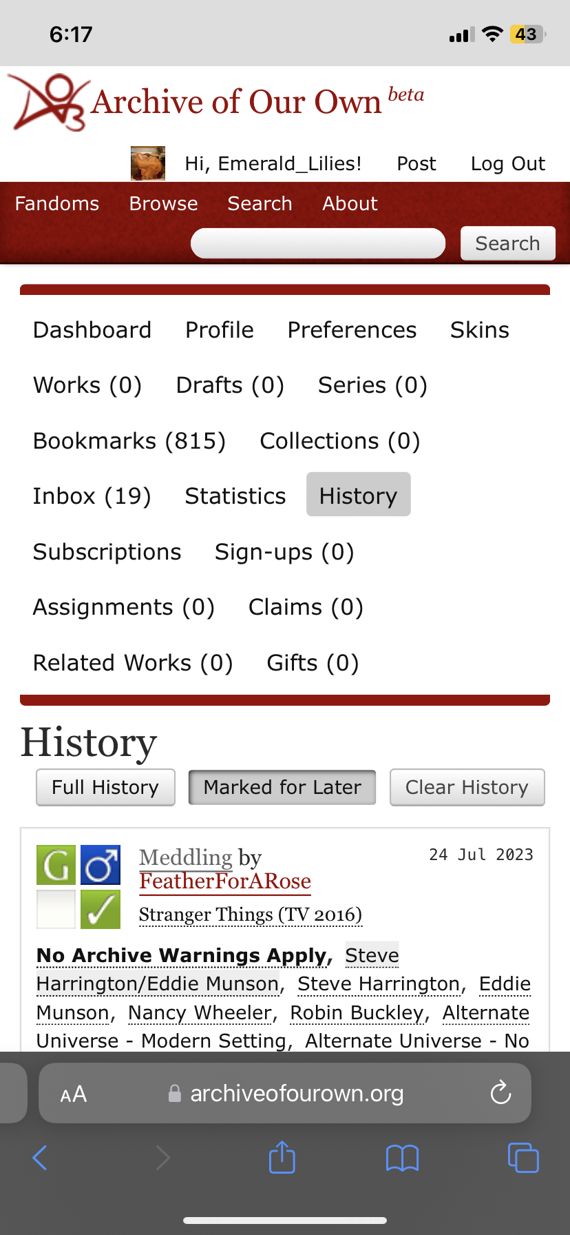 Oh that's weird, this is what I see on my AO3.