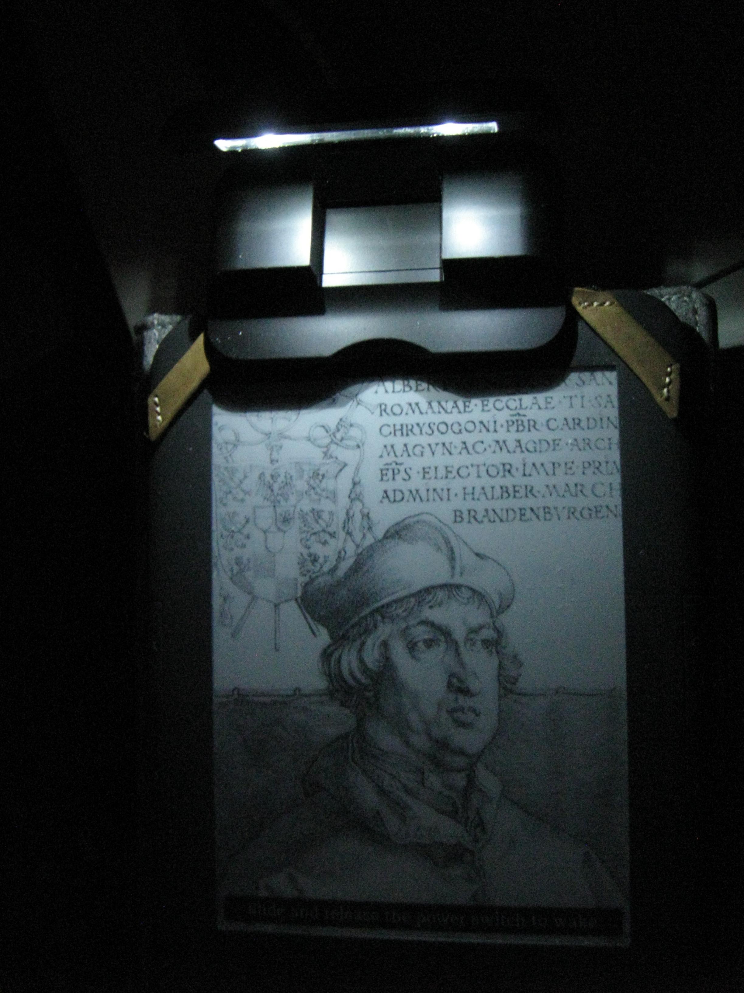 Two things struck me right away. First was how light it feels and second is how securely the suede lets me hold it; whatever the opposite of slippery is, this is it. It’s very easy to put the Kindle in and take it out of this cover thanks to two fixed retention straps for the base of the Kindle and two elasticized straps for the top. Both the front and back covers are made of some ridged material but there is no clasp to hold it shut. Thanks to a hinged spine the front cover doesn’t try to pull open though. I think assembly of this cover needs to be better thought out. The right top elastic tie down is slightly pulled away from the backing. Despite the appearance of being sewed all the way around, I suspect the gray felt inner cover is glued to the backing even though it looks stitched. A bigger potential issue is to how well the two elastic tie downs will age; over time, will it stretch and stop working? For now the M-edge Antique Jacket holds my Kindle securely. I didn’t order it with the M-edge book light since I already have practically a collection of book lights. It accepted other brands gracefully but with the same caveats you have with all booklights. Holding the Kindle with this jacket was more comfortable that with other ebook covers I’ve used. The cover folds back readily giving a solid grip with either right or left hand without keeping you from reaching the page buttons. In sum, I like the cover despite the assembly flaw. At $50 you'd expect it to be better assembled. However it’s other characteristics recommend it well enough to me to keep it. |