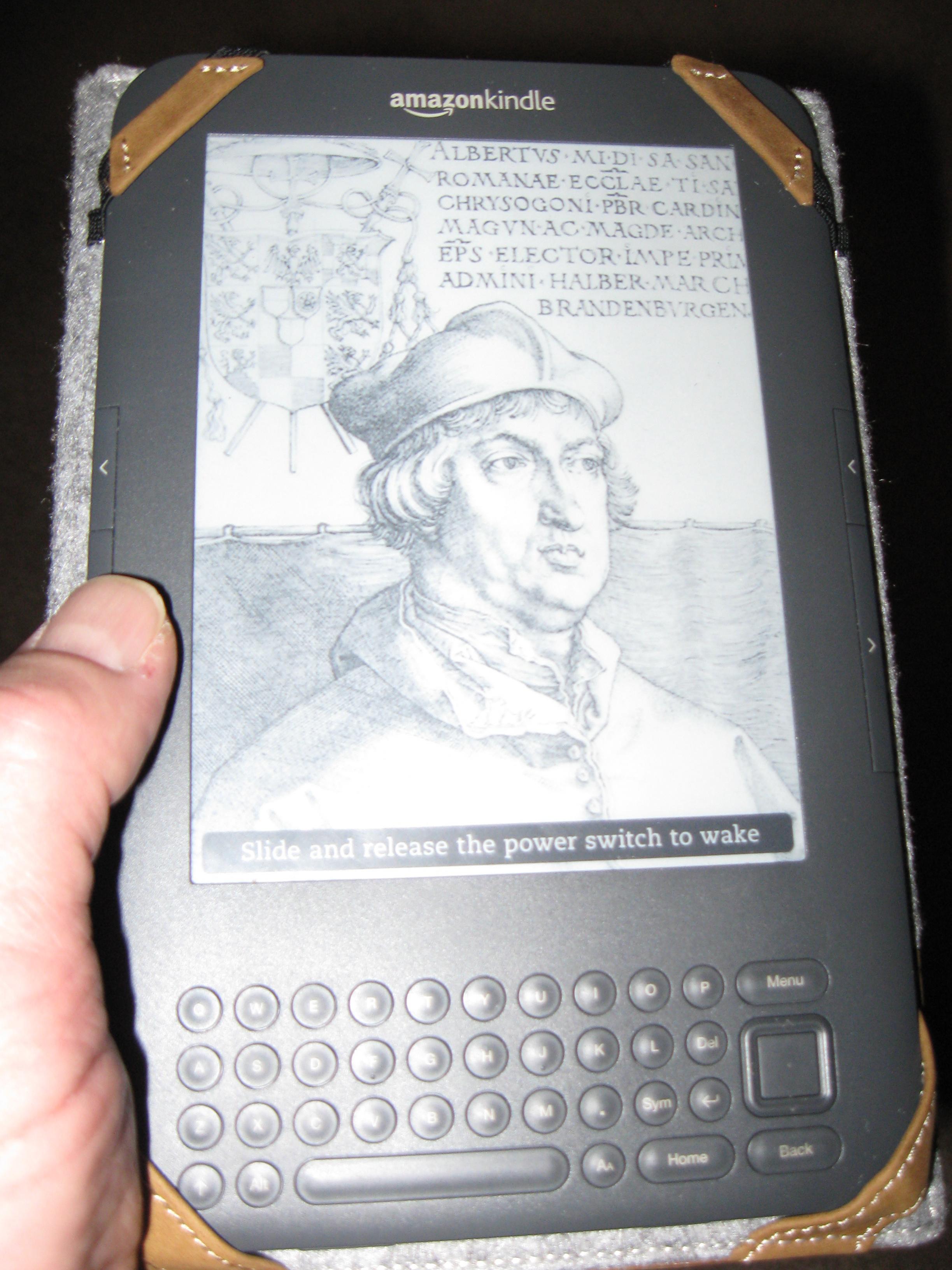 Jane asked me to let others know about the M-edge Antique Kindle cover. Well, it arrived today. It looks just like the pictures at Amazon. It came in a clear plastic bag with a Kindle sized piece of Styrofoam where the Kindle goes.