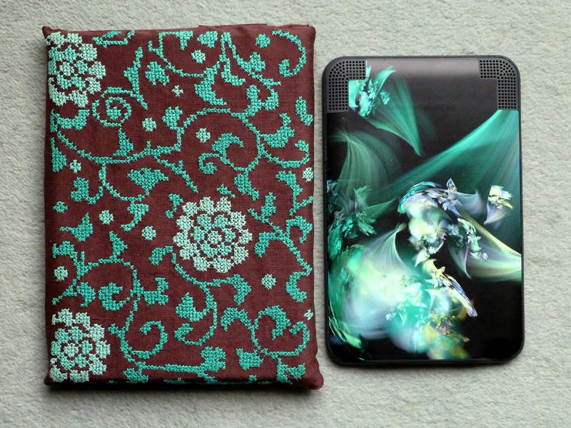 mysteryoustrvlr: you could always try and make your own pattern if you can't find one probably way beyond my abilities to be honest! While I was deciding which Oberon cover to get (and then waited for it to arrive via a friend in NY) I made a quick DIY sleeve with some bubble wrap, strong cardboard and tape, then (badly) sewed a fabric envelope and asked my mum to embroider it in colours matching the skin on my Kindle