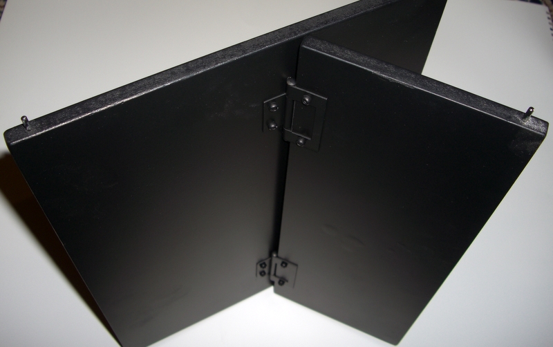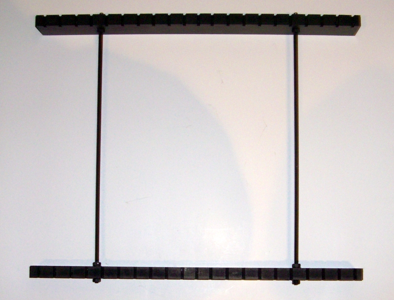 Materials: hardwood, glass, steel rods, nuts and bolts, black spray, black cardboard.