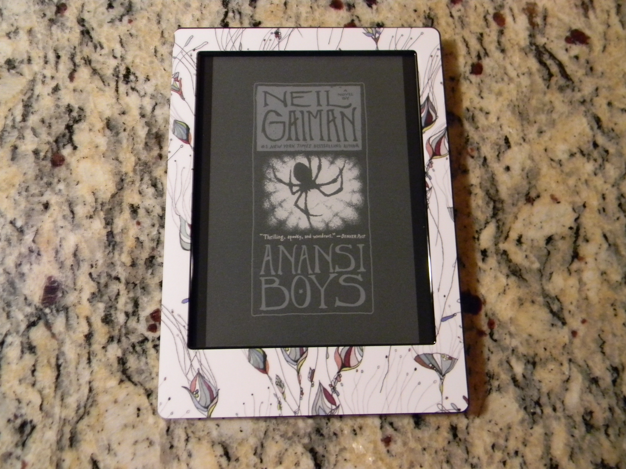 I wouldn't like decals on my eReader, but that same book, Anansi Boys, happens to be the book I'm currently reading on my Sony T2. (Borrowed from the library -- the T2 makes library loans easy (no computer required), which is why I either use it or one of the Kindles (only a little harder to use, requiring a computer) when borrowing books.)