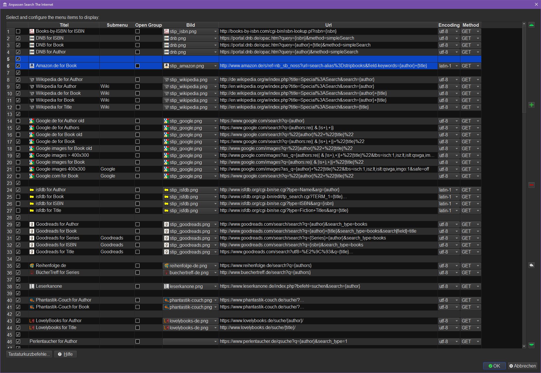 I don't know why, but this time StI accepts the settings after a restart despite the error message - Calibre has not done this before. The images below moving Amazon upwards are in the order before the restart. Anyhow, I'll send you the json file |