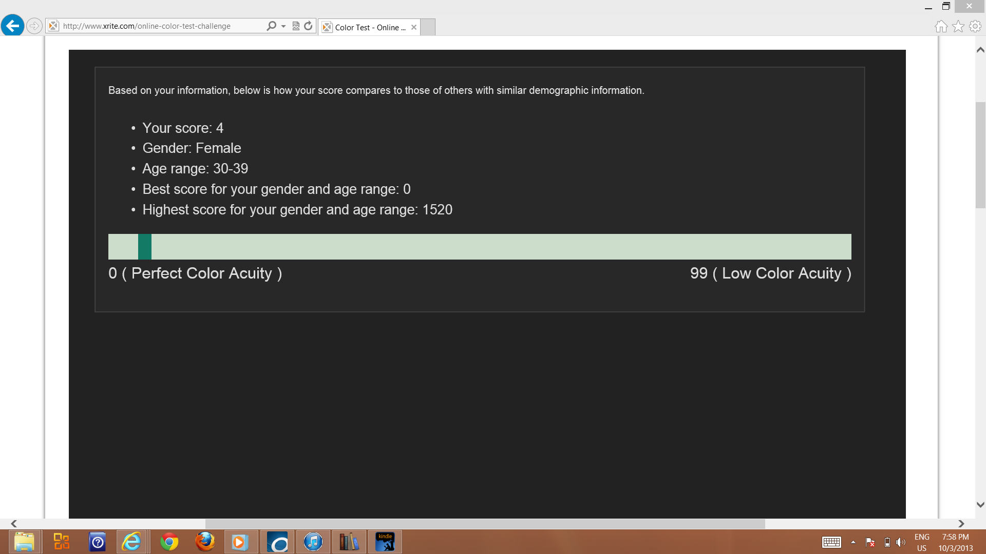 Wow! I love how many of you took the test! I scored a 4 on an uncalibrated Win 8 tablet screen.