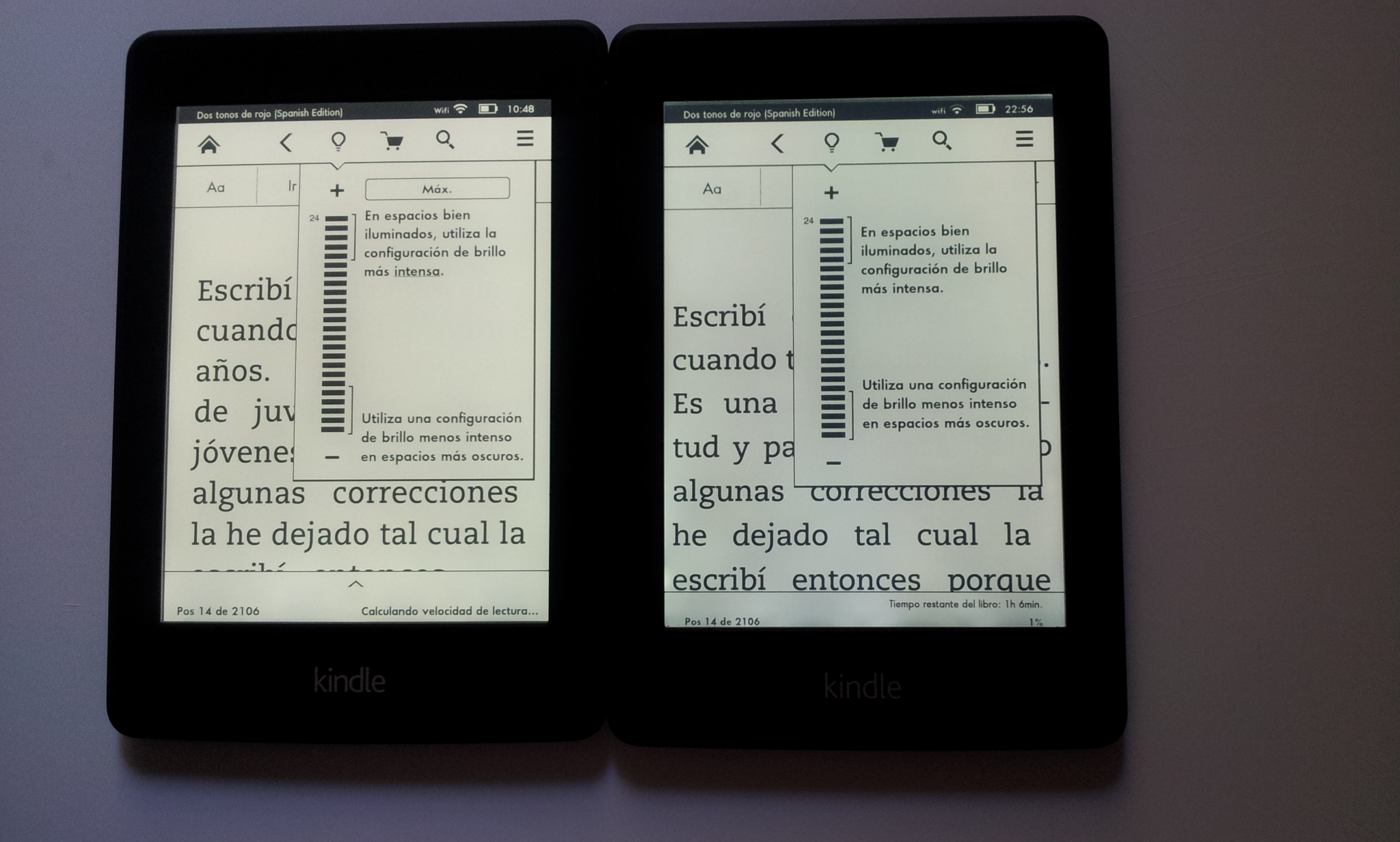 When the PW2 was announced, I initially passed on preordering it, only to become intrigued by some of the new features and the promise of even sharper contrast. I ordered it last week and received it yesterday. Having read about the pinhole problem on this thread, I was relieved to see my PW2's screen was fine. No pinholes, blotches, or uneven lighting. In my well-lit office at work, when I placed the PW2 next to my PW1, I thought text looked slightly but noticeably sharper while the screen looked slightly yellow but not distractingly so. I thought I would be very happy with my new toy and proceeded to load my books onto it and start reading. All was well until last night. I tend to read a lot in our dark bedroom. I generally set my PW1 to level 4, which provides a comfortable amount of light for me without straining my eyes or bothering my sleeping husband. Last night, when I tried out the PW2 in the darkened room, I was struck by how much yellower it appeared. At level 4 it was very dim and was unreadable. At levels 6-7 it started to approximate my PW1's level 4 but was still not as clear. I gave it a fair try but finally gave up. I really don't understand why Amazon went for a yellower look to the screen when the device is called a PaperWHITE. I hope the next iteration of the PW is better, but in the meantime I'm happy to still have my PW1. |