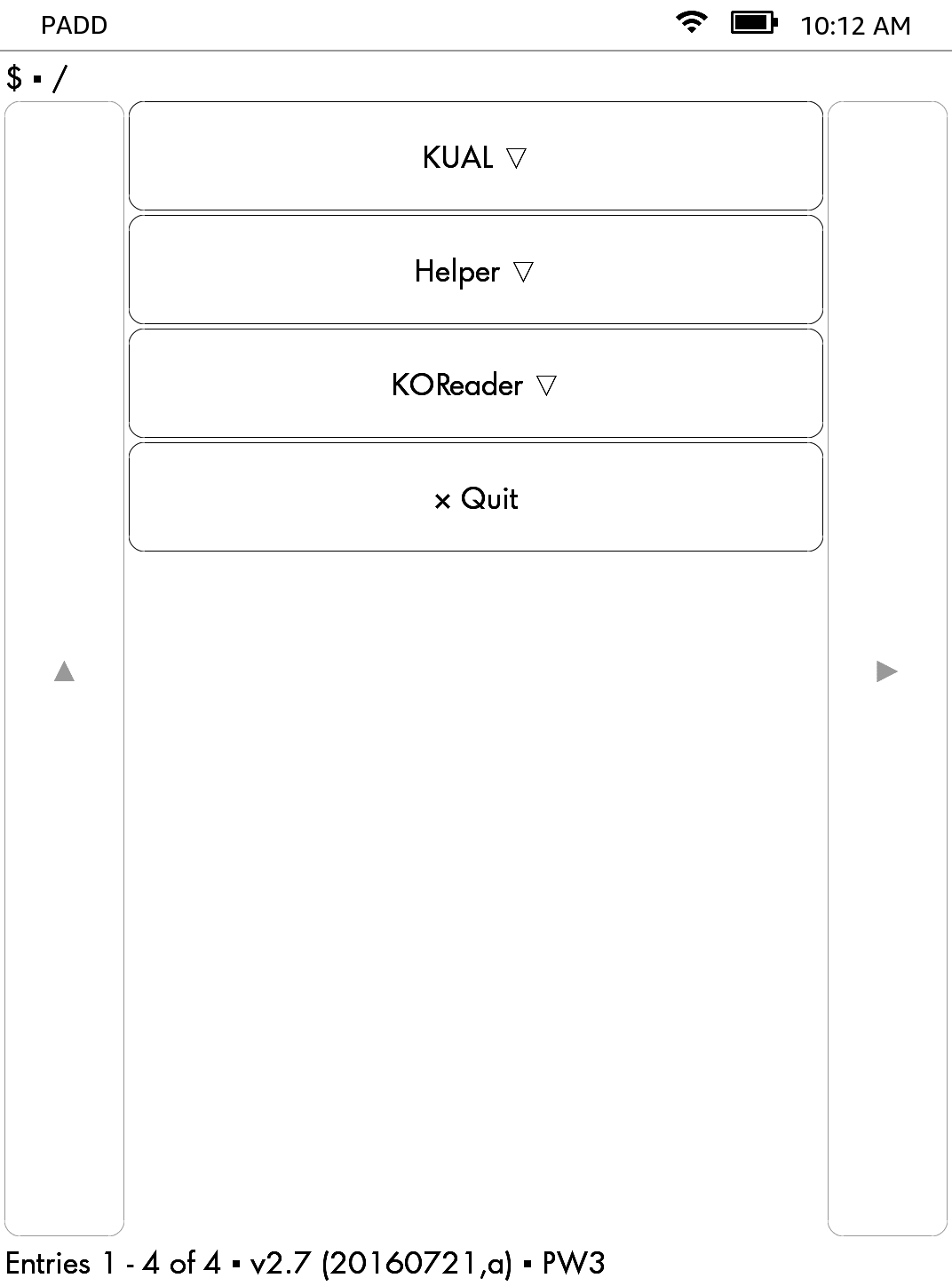 ![]() There are three builds of KUAL (all in the same, very recent, v2.7, archive. see sticky area above the thread index). The one for the keyboard devices (KUAL-KDK-1.0.azw2) The one for the touchscreen devices (KUAL-KDK-2.0.azw2) And the newest one, an update_*.bin format package. (Update_KUALBooklet_v2.7_install.bin) THAT one is the 'booklet' version of KUAL. You will need to use MrPI to install it. I think you can have it installed at the same time as the older document version (but you could just remove the document version of KUAL from /documents while testing. All of the /extensions files can remain - they both use the same ones). Last edited by knc1; 07-27-2016 at 09:28 AM. |
