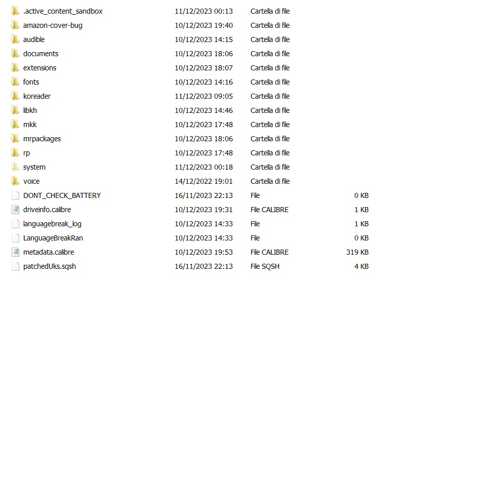 Thanks shamanNS, through your advice I managed to "resell" the device and go back to normal mode. But now when I go to the library I can no longer find Kual and therefore I can't even access Koreader and Renameotabin. However, on the Kindle the Languagebreak, Kual and Koreader files appear to be present, as can be seen from the attached image. What would be the best procedure to restore Languagebreak, Kual and Koreader? Reset the device and start all over from point 1 of the instructions?