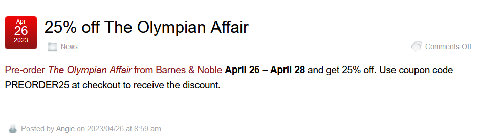 25% off The Olympian Affair