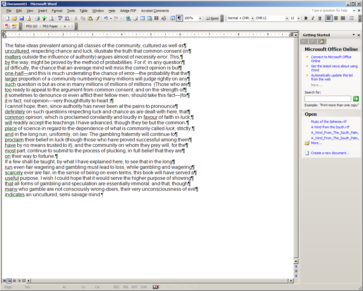 I used a text file as found out on the net. Your standard screwed up text file with poor line endings. Given that the start of the paragraphs were just left justified text, there is no way any program can figure out what's a proper paragraph or not.