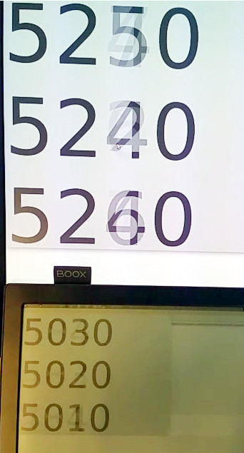 You can show simultaneously Onyx Boox Pro and LCD display (in mirror-mode), so we can estimate the time delay? I want to see how much Onyx lags behind the LCD display. |