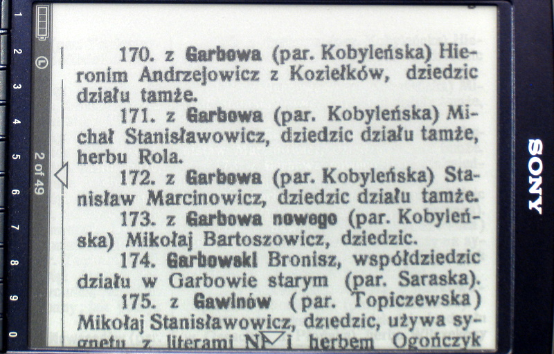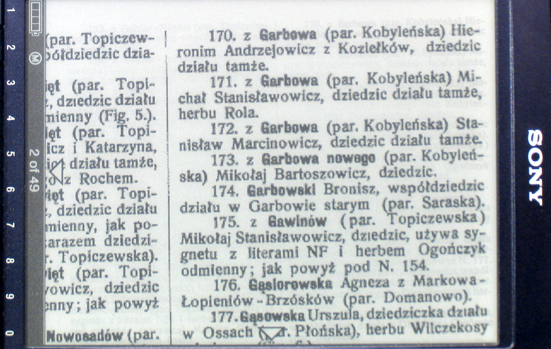 What a pity that Sony does not allow collections/folders of pictures. Why their developers have crippled the Linux implementation so much is beyond any reasoning. The Archos allows folders, so each collection of png book pages can be placed in its own folder and read page after page. In Sony, it is just a long list of png pages from the pictures menu. Fortunately they can be viewed in sequence by using the page buttons. |
