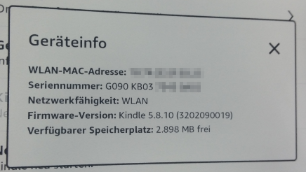 Kindle PaperWhite 3 White (2015) WiFi, G090KB, 5.8.10 see the screenshots for the particular fw versions. |