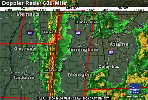 Tornadoes crossing the state line into Alabama. This line of storms runs the entire length of the state!