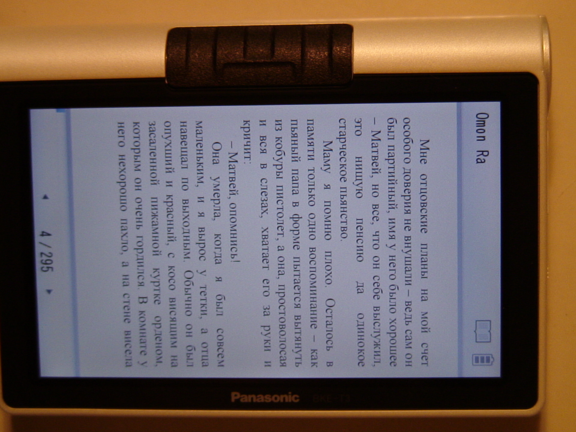 http://sens.boston.googlepages.com/pelevin_omon_ra.pdf http://sens.boston.googlepages.com/p...n_ra_solid.pdf (first built with PrimoPDF printer, second one with Solid, both formatted for Reader and have embedded cyrillic font Times New Roman) Also could you test the battery life at "reading-only" mode? Thanks a lot, man! |