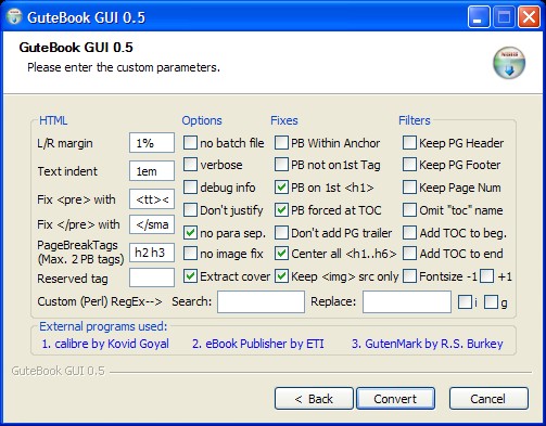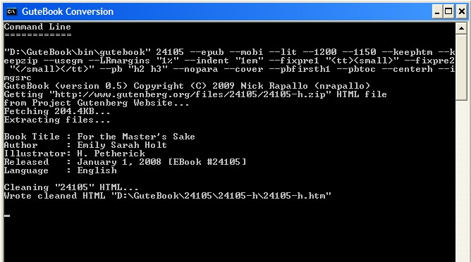 ![]() All you need to do is install my GuteBook (see my sig for the link) and provide it with the Etext# 24105 and select which formats to produce (.epub, .mobi, .lit, .imp, ...) and customize/filter the html fetched directly from www.gutenberg.org and VIOLA, in under two minutes..... nicely produced ebooks! The snapshots below show GuteBook in the process of creating the attached ebooks :