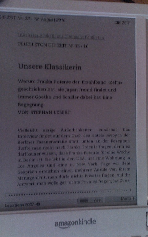 Als mobi-Version für den Kindle hätte ich die Zeit immer dabei und der Papiermüll würde auch entfallen
