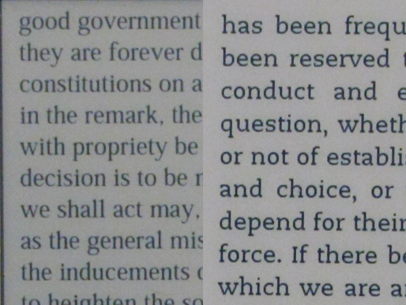 I think this clearly shows the vast superiority of the Pearl eInk screen to the 2nd Generation eInk screen, especially in the closeup view.