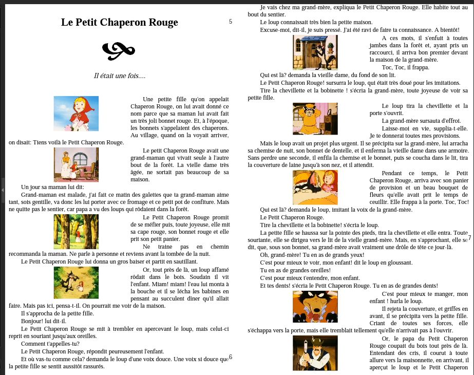 I'm designing a child book in epub. The book will be split into 2 parts first part classical ebook with little images, the second part will have only one big image per "page" so as the parent can tell the story to his child only based on the image. I have a problem with part 2. I know that epub is intended to be reflowable, but it is important for me to have on the same screen (on ADE, on iPad, Iphone etc..) the image plus the title. I tried to make one part per image pict1.xhtml pict2.xhtml etc.. with html like this: <body> <div class="wrapper"> <p><a id="pic1"/></p> <p class="centerImage"><img src="images/big1.jpg" alt="Le Petit Chaperon Rouge" title="Le Petit Chaperon Rouge"/> Le Petit Chaperon Rouge part dans les bois</p> </div> </body> with css: .wrapper { clear:both; padding-bottom: 5%; position:relative; padding-top: 1em; } .centerImage { text-align: center; height: 100%; z-index:-1; position:absolute; top:0px; right:0px; } The problem is that depending on text size, I have image on one screen and title on the other screen and even a blank extra page before the next image. Did you have experienced that and could you help solving my problem? |