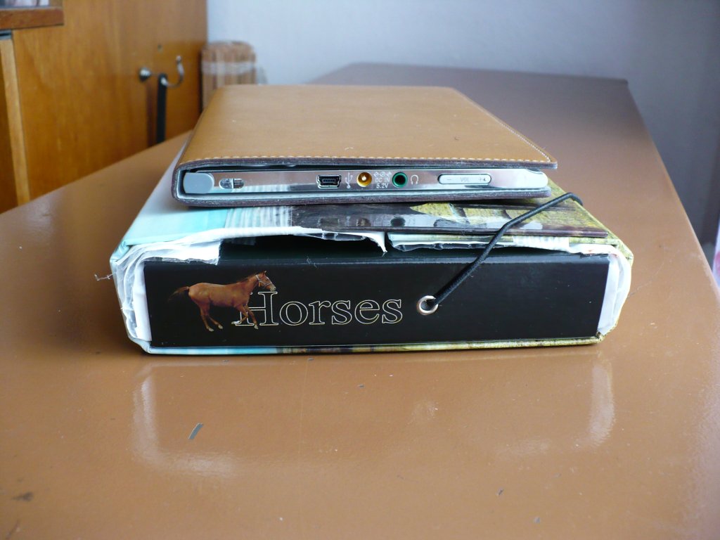 First one: I measured my reader. Then I have cut two sheets of 5mm thick plywood. I have laminated one side of plywood using thick glass fabric (500grams per square meter) using epoxy resin (I have had some resin with long past expiration date - this is why the lamination is not transparent). Then I cut three sides from a piece of wood with 1cm x 3cm crossection and and glued and screwed them into the sides in such a way that the laminated layer is *inside*. Then I rounded the edges and laminated the outside of the case using finer glass fabric and epoxy. Finally I have lined the inside of the case using remains self-adhesive strips of foam I have been using to insulate doorframe. The construction is very quick, very ugly and very, *very* strong. The laminated layer inside gives the case very high rigidity. I think it can survive being run over by a car. The second case: I have been carrying a piece of cardboard cut exactly to the size of Reader in my bag from the moment I have arranged for my reader to be bought for me. I have been looking for a nice case (with that piece of cardboard in hand) everywhere I went. I tried numerous boxes, food containers, cases, suitcases, sets, toy containers ... ... finally I have found a perfect tin case. I have purchased a set of threading tools for $10 in a "super bargain" bin in a local Lidl supermarket. The threading tools are most probably worthless and will break during the first use. It does not matter. I was willing to pay that $10 (in my local currency) for the tin box alone. I use the wooden box when I need extra protection for my reader. The tin case is perfect for carrying my Reader in the notebook case together with a notebook on business trips. |
