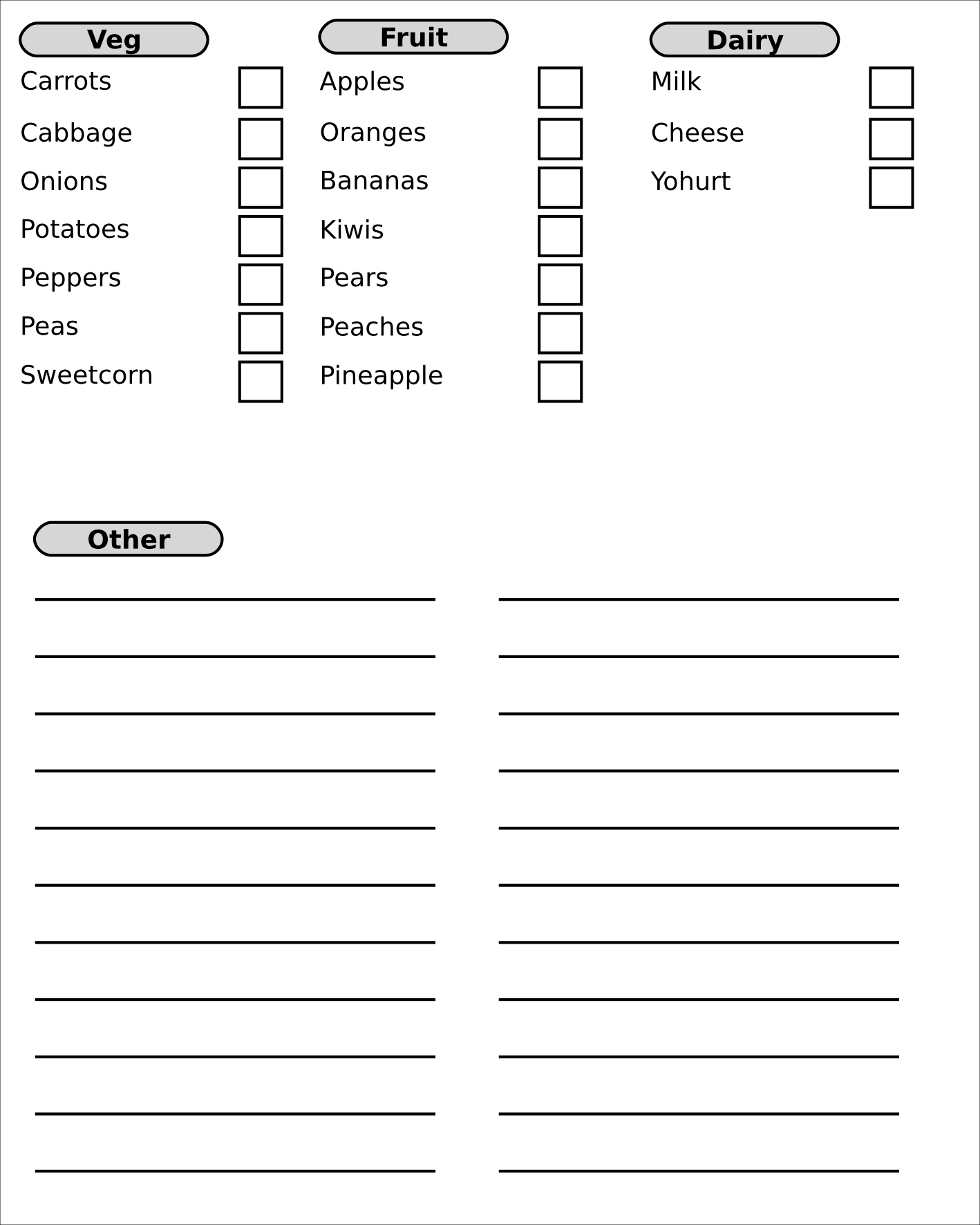 Here's one for a shopping list. It is not worked out properly, I just threw it together to demonstrate the idea. Copy it across to the iliad and open it up.