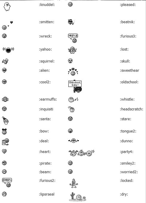 Not much to add to the title. @recluse, I hope this helps you visualize the :evilgrins: and :eeks: I tried to capture the best moment of the moving ones, but it's hard to time it with 10 animations running simultaneously, so if a smiley dosn't look quite up to the :name:, it's probably me ![]() |