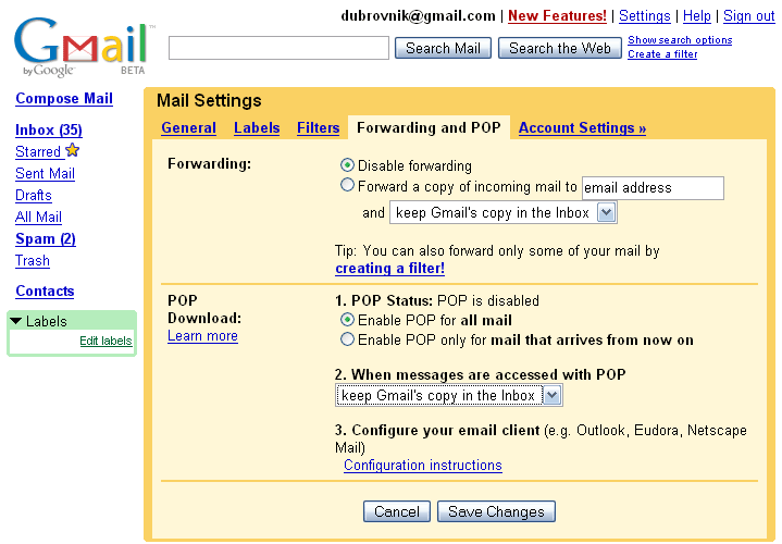 * Free POP access Download your messages. Read them offline. Use your Blackberry or Outlook or just the good ol' web. Learn more * Free automatic forwarding Forward new incoming messages to any email account you specify. Learn more |